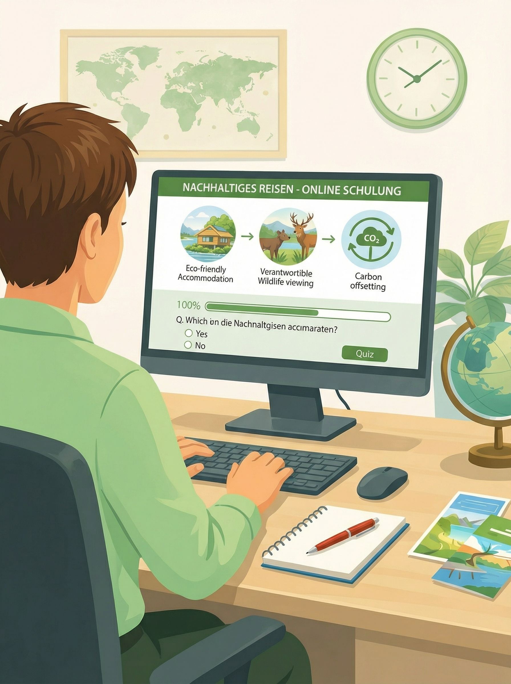Im Fokus der Online-Schulung stehen die Handlungsmöglichkeiten, wie Kund:innen umwelt- und sozialverträglicher reisen können und warum es sich lohnt, die Tipps bei der Beratung einzubinden.