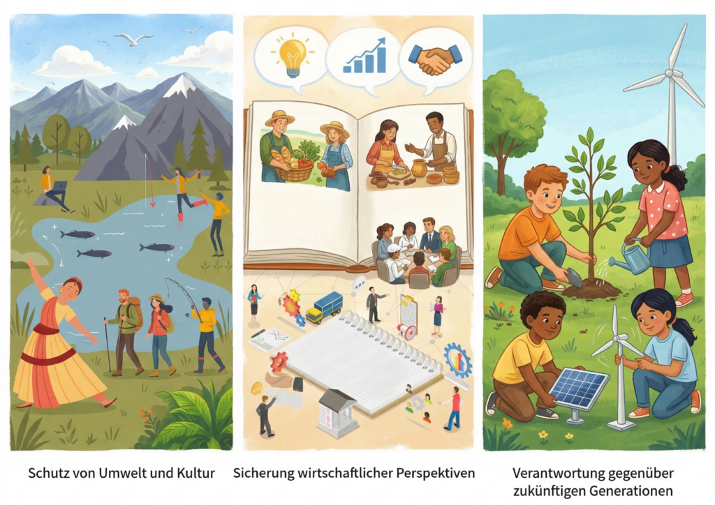 Eine nachhaltige Tourismusentwicklung verbindet gleich mehrere, wichtige Ziele: den Schutz von Umwelt und Kultur, die Sicherung wirtschaftlicher Perspektiven einer Region und die Verantwortung gegenüber zukünftigen Generationen.